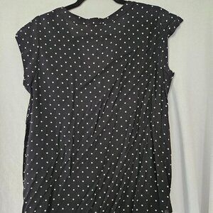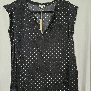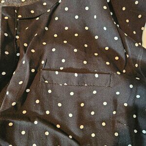 Anne Carson Size XL Black Polka Dot V-Neck Short Sleeve Blouse NWT