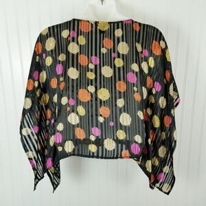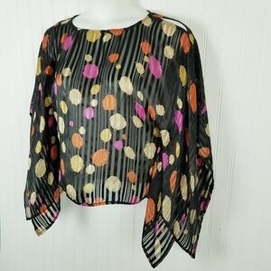 Anne Carson Womens Silk Top Blouse Size Large Batwing Multi Color Sheer Artsy