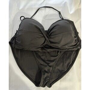 Anne Cole 1 Piece Black Swimsuit Bathing Suit Removable Strap Size 16