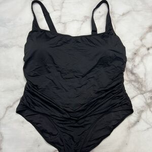 Anne Cole BLACK Plus Size 24W Ruched Slimming One Piece Swimsuit New
