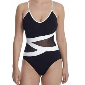 Anne Cole BLACK WHITE Asymmetric Mesh One Piece Swimsuit US 6 NWT