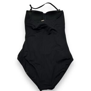 Anne Cole Black Shirred Twist Front One Piece Swimsuit Size 8 Halter Bandeau