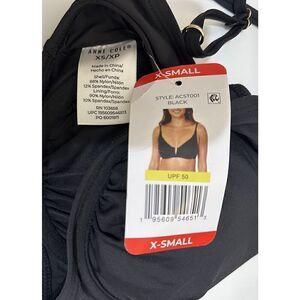 This Anne Cole black V-underwired bikini top in size XS is the perfect addition to your swimwear collection. The top is made of high-quality nylon material that ensures durability and comfort. The underwired design provides support and enhances your curves, giving you the perfect silhouette. The black top is perfect for pairing with your favorite bikini bottoms and is suitable for any beach or pool day.