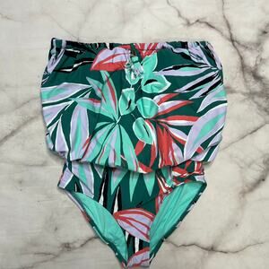 Anne Cole Blouson One Piece Swimsuit Tropical Green Size 6 Slimming Bandeau New