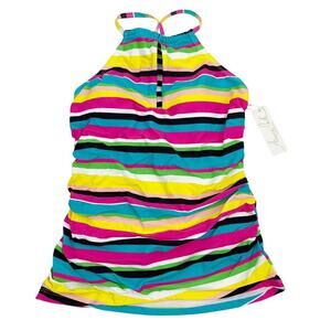 Anne Cole Center Tab High Neck Tankini Swim Top Size Small Striped NEW