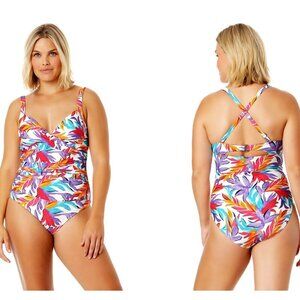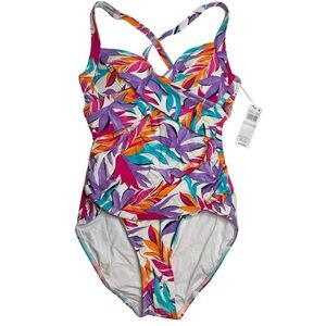 Anne Cole Dance Floor Palm Underwire Surplice One Piece Swimsuit Size 6 New NWT