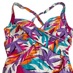 Anne Cole Dance Floor Palm Underwire Surplice One Piece Swimsuit, women's size 6.