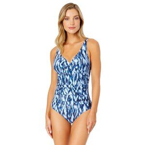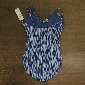 Full Title: Anne Cole Dye Ikat One Shoulder Hidden Underwire Swimsuit Tie Dye Ikat Blue 8