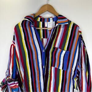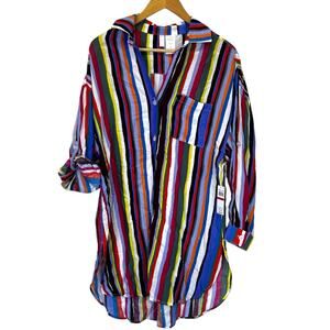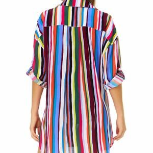 Anne Cole Easy Breezy Stripe Button Down Shirt Swimsuit Cover up multicolor - XS