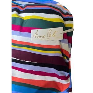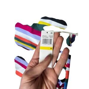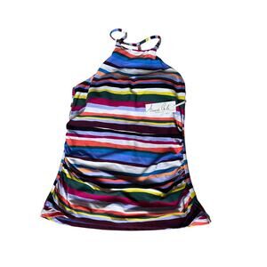 This stylish Anne Cole tankini top is perfect for your next beach trip! It features a flattering high-neck design and unique back-strap detailing. The striped pattern adds a touch of fun and sophistication. Pair it with your favorite swim bottoms for a complete and chic look! It comes in multicolors in a size medium, and is new with tags!