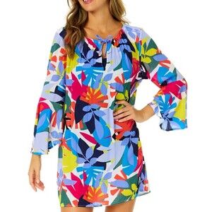 Anne Cole Floral Bell Sleeve Cover Up Tunic Dress Sz Medium New