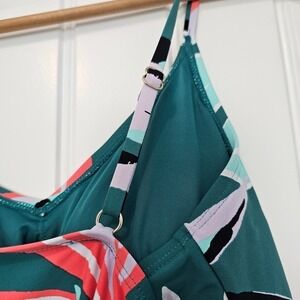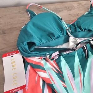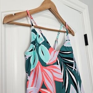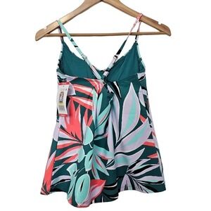Anne Cole Floral Swimsuit Top Size X Small Green Floral Tankini Adjustable