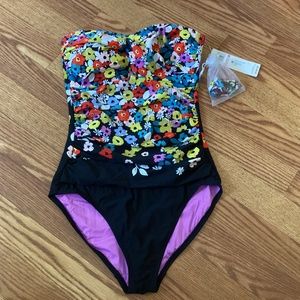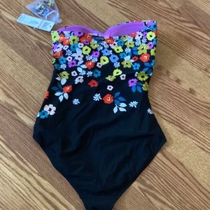 NWT Anne Cole Floral Twist Front Shirred One Piece Swimsuit Size 6