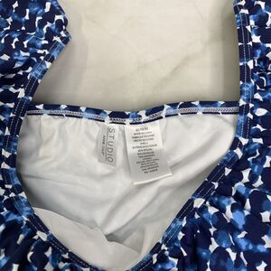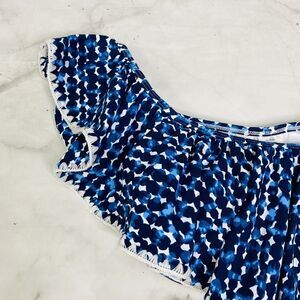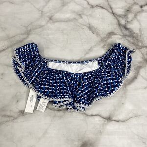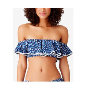 Anne Cole Flounce Around Off Shoulder Bikini Swim Top Size M Blue Geo Dot New
