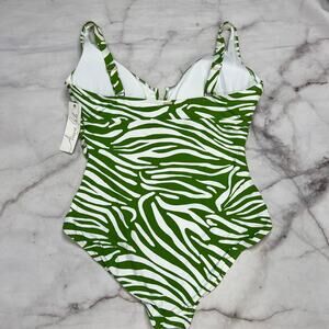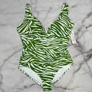 Anne Cole Green White Stripe V-Wire One Piece Swimsuit