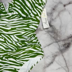 Anne Cole Green White Stripe V-Wire One Piece Swimsuit Size 18W Shirred New