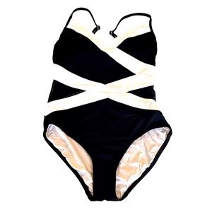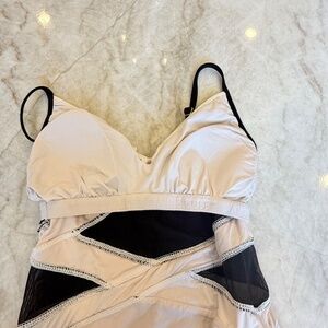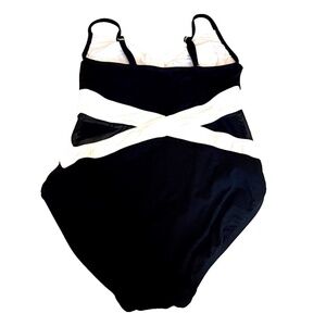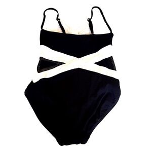 Anne Cole Ladies One-Piece Swimsuit; Black/White; Mesh Cut-Outs; Size 6