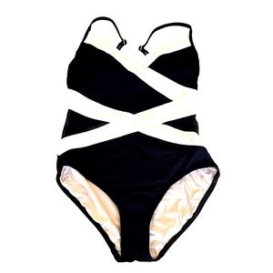 Elevate your poolside presence with the Anne Cole Ladies One-Piece Swimsuit, a stunning blend of style and comfort. This elegant piece, in a chic black and white palette, offers a timeless aesthetic with its classic theme. Designed with fashionable mesh cut-outs, it adds a touch of sophistication to your swimwear collection. Crafted for the modern woman, this size 6 swimsuit provides a flattering fit with its regular size type. Whether you're lounging by the water or enjoying a swim, this Anne Cole one-piece is a versatile addition to your summer wardrobe, ensuring you make a statement without saying a word. Suit is in excellent, pre-loved condition!