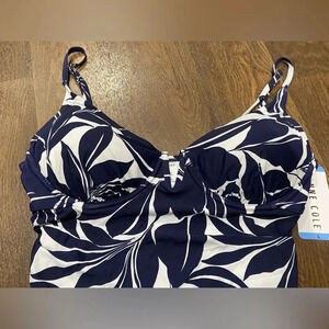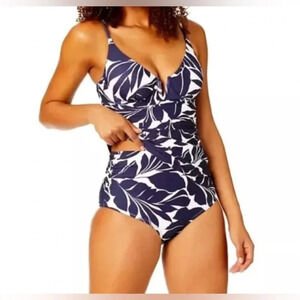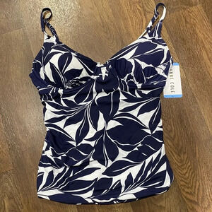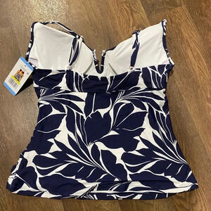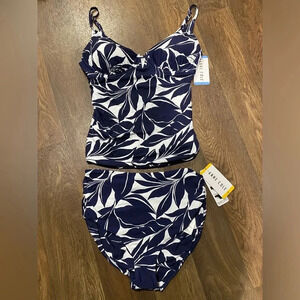 Anne Cole Navy White Coastal Palms Split V Tankini and High Waist Bikini Bottom