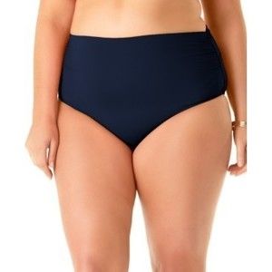 Anne Cole Plus Size High-Waist Shirred Bottoms Navy, Nylon, 22 Plus