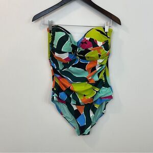 Anne Cole Polynesian Palm Twist Front Shirred Bandeau ONE Piece Size 12