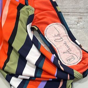 Anne Cole Ring Strap Multicolor Striped One Piece Swimsuit - Sz 12 NWT