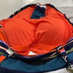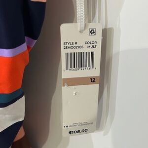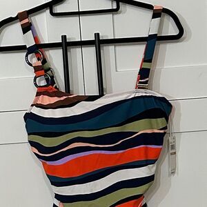 Anne Cole Ring Strap Multicolor Striped One Piece Swimsuit - Sz 12 NWT