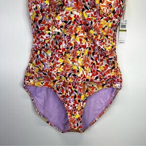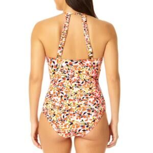 Anne Cole Ruffled Strap Keyhole One Piece swimsuit coral ditsy print - 14