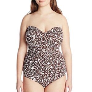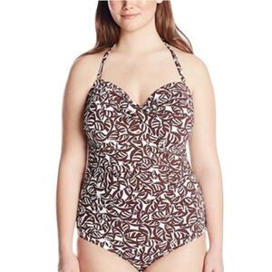 Anne Cole Signature Convertible One Piece Swimsuit Brown and White Size 20W NWT