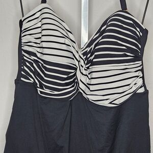 Anne Cole Signature Plus Size 24W Black White Striped Swim Dress One Piece