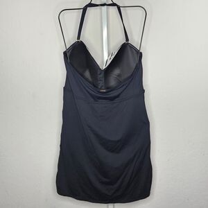 Simple and flattering, this Anne Cole Signature swim dress features a chic black and white striped bust with a sleek, solid black body. Designed with built-in support and a halter neckline, it provides both style and comfort for poolside or beach days.
