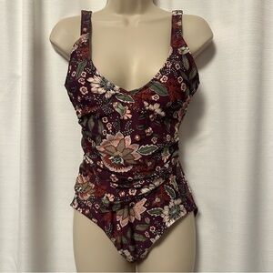 Anne Cole Size 10 20M0033 Wine Floral Print Boho Flattering One Piece Swimsuit