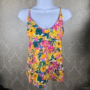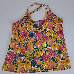 Anne Cole Size Large Orange Floral Tankini Top Adj Straps Removable Padding NWT