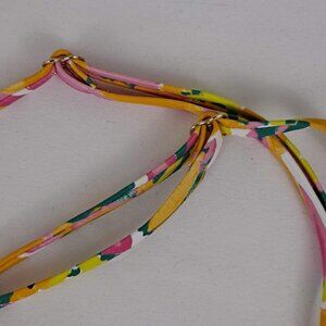 This multi color floral print tankini top has criss cross adjustable straps for a personalized fit. The shelf bra inside has removable cups. Easily pairs with swim bottoms or shorts.