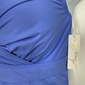 Anne Cole Tankini Swim Top Womens 24W Periwinkle Blue Ruched Underwire Plus Size