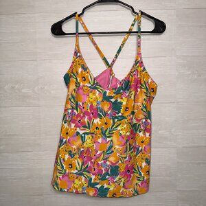 Anne Cole Tankini Swim Top XXL Floral Print Yellow Pink Cross Back Adjustable