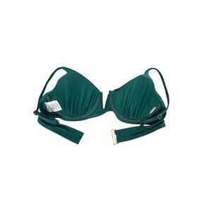 Teal bikini top with underwire bra, removeable pads, adjustable straps, goldtone metal clip