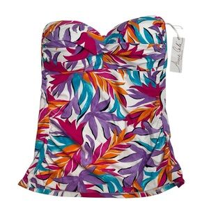 Anne Cole Twist-Front Bandeau Tankini Top & Foldover Bikini Bottom Set, women's size S small.