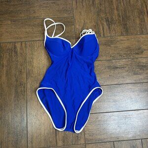 Anne Cole Vintage Royal Blue White Trim One Piece Swimsuit