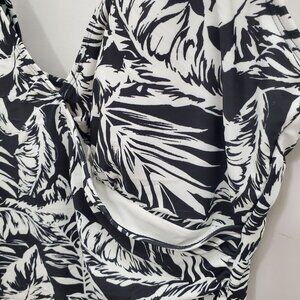 Anne Cole Woman's White Black Tropical Leaf Print One Piece Swimsuit Plus Sz 16