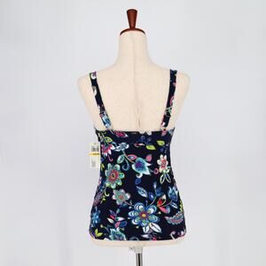 Anne Cole Women Navy Floral Twist Front Bandeau Tankini Swim Top Size 34B/32C