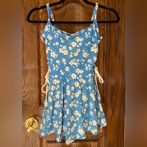 Cutest one-piece swim-dress with floral design. Features side lace-up detail and adjustable straps. Great condition. Size 8.