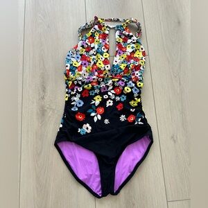 Anne Cole Women's Size 6 Ditsy Floral High-Neck One-Piece Swimsuit Black