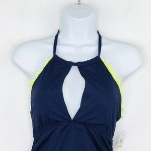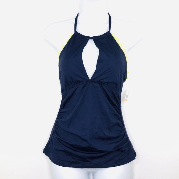Anne Cole Women's Small Tankini Top Swimwear Ric-Rac Keyhole Navy Blue NWT B24