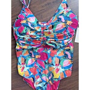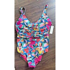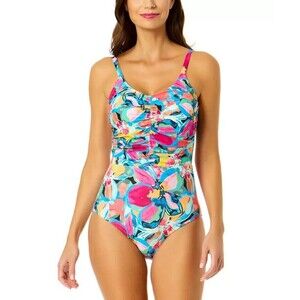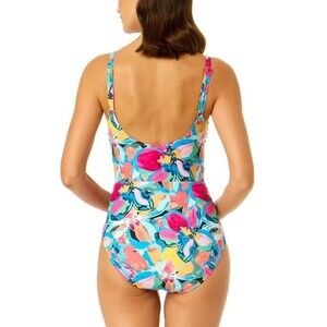 Anne Cole Women's V-Neck Shirred-Front One-Piece Swimsuit Floral Multicolor 16