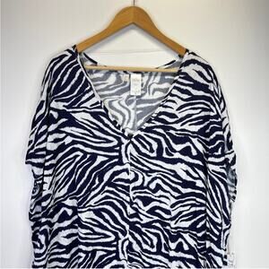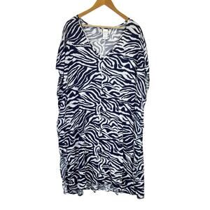 Anne Cole Zebra Print Swim Cover Up Dress navy blue white - 18/20