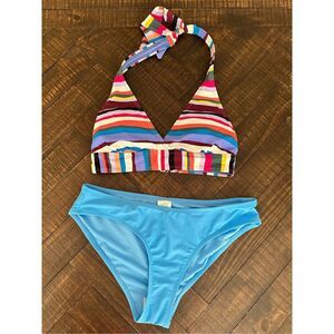 Anne Cole and Wild Fable Blue and Colorful Stripe Bikini Size Medium