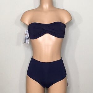 New. Navy twist top navy bikini top and 3-way convertible bottoms. I love this classy , versatile bikini.