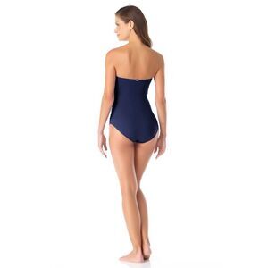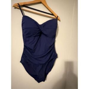 Anne Cole Size 16 Twist Front Shirred One Piece Swimsuit Navy Blue Adjustable