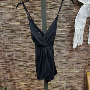Anne Cole Women's Live in Color Surplice Maillot Skirted Swim Dress in Black | Plus Size 14